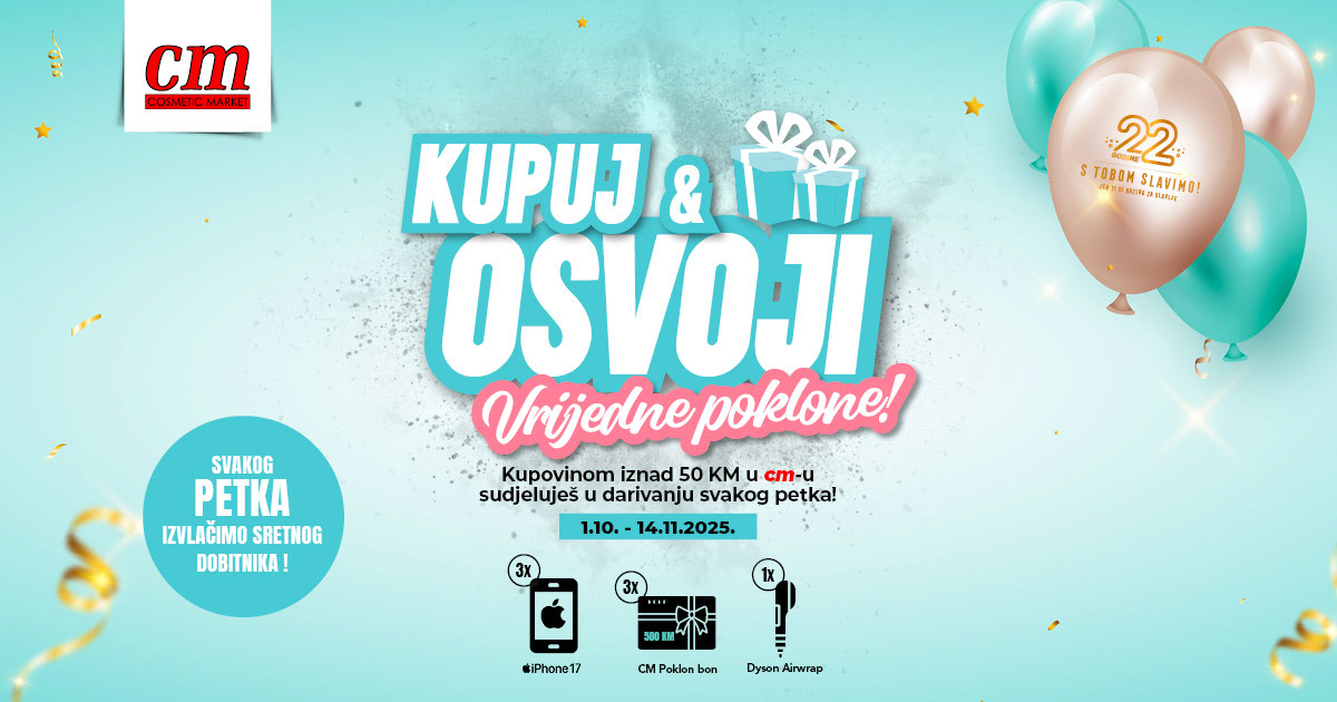 Nakon kupovine u vrijednosti 50 KM i više posjetite www.cmbih.com unesite tražene podatke kako bi sudjelovali u darivanju.