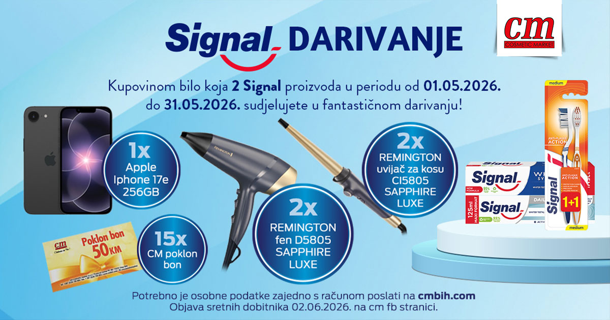 Kupovinom bilo koja 2 Signal proizvoda u periodu 01.05. do 31.05.2026., sudjelujete u fantastičnom darivanju!