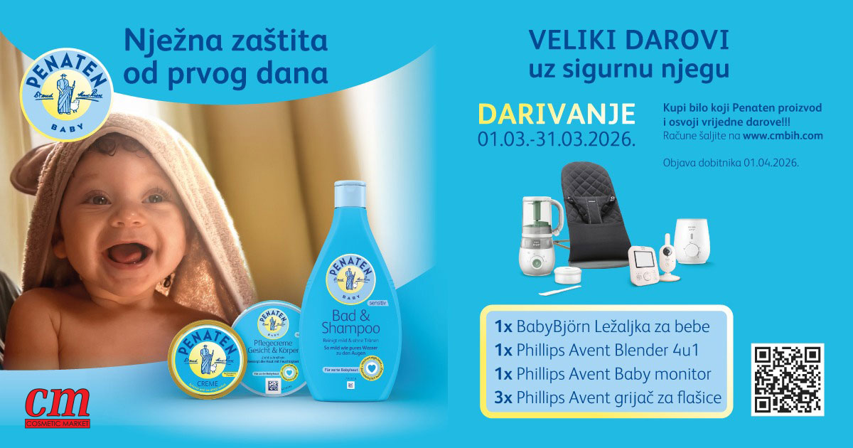 Kupovinom bilo kojeg Penaten baby artikla u periodu 01.03. do 31.03.2026. , sudjelujete u darivanju u kojem možete osvojiti vrijedne darove!