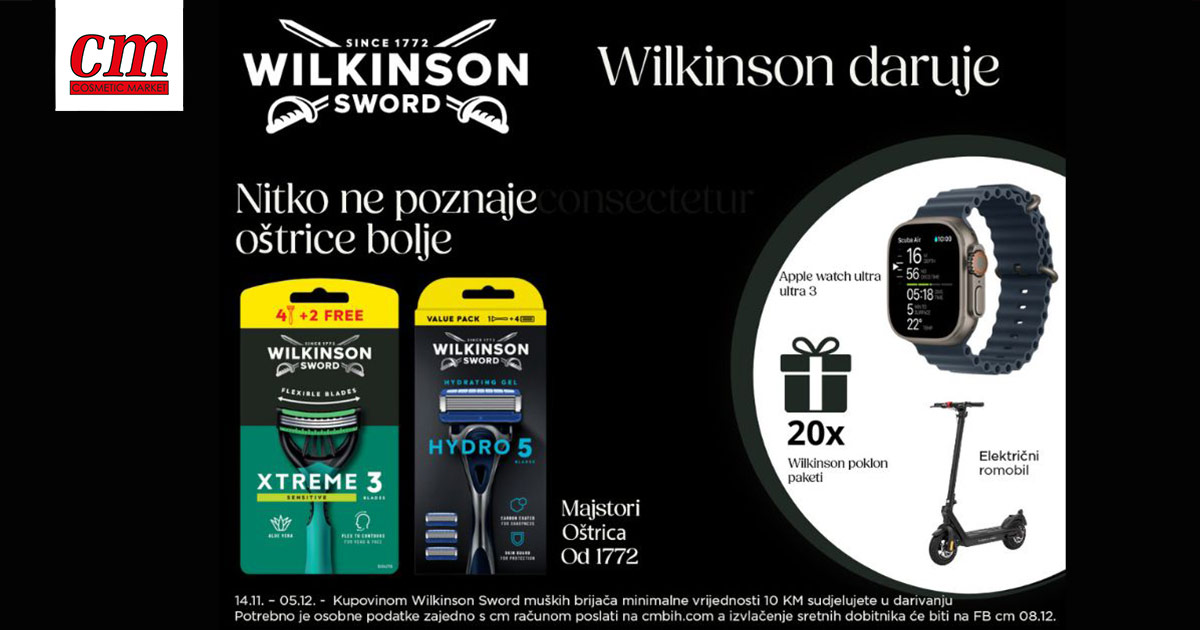 Kupovinom Wilkinson Sword muških brijača minimalne vrijednosti 10 KM sudjelujete u darivanju u kojem možete osvojiti: